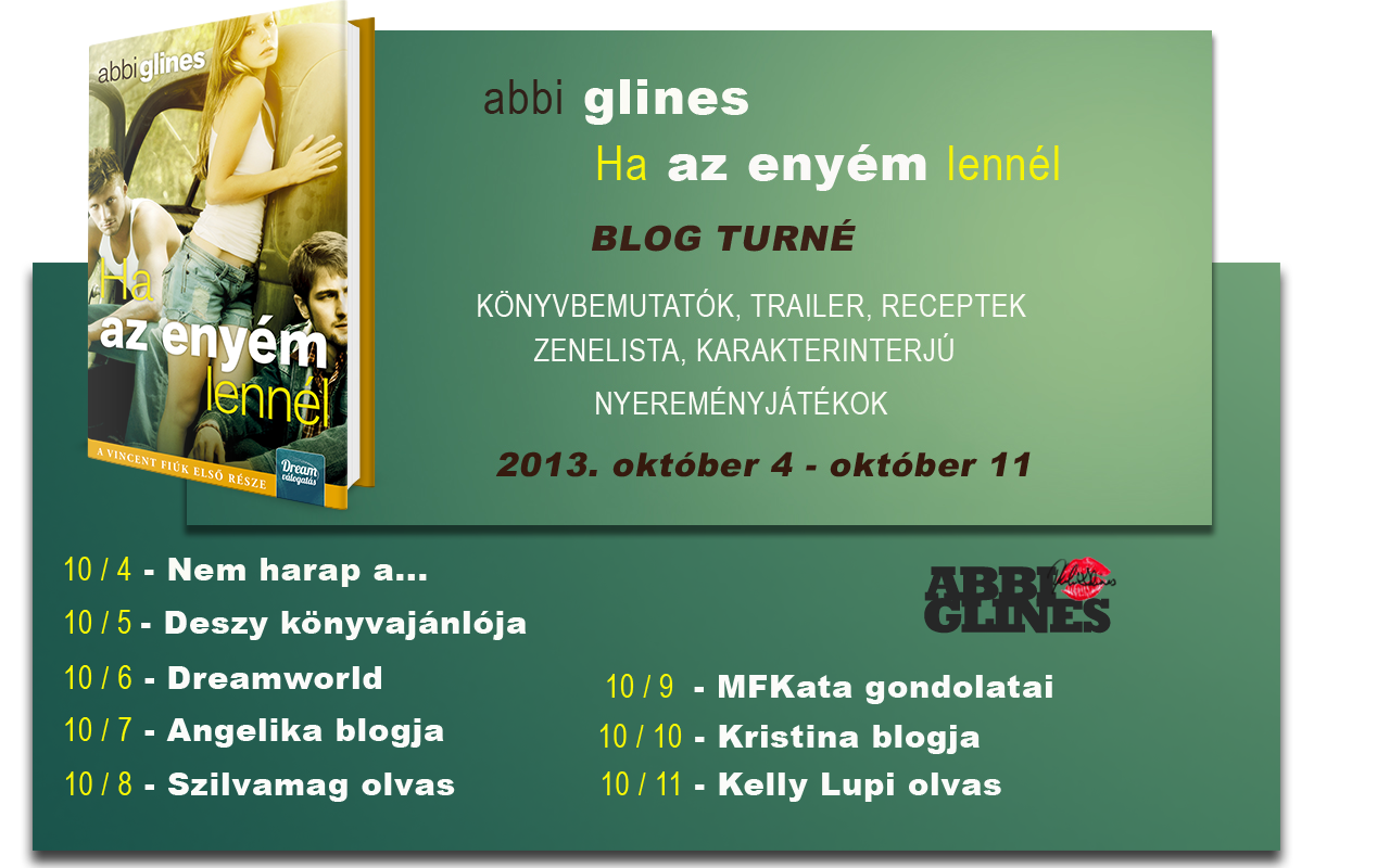 2) Keressétek minden nap a blogturnéban részt vevő blogok posztjaiban az elrejtett ABBI GLINES logókat. Az utolsó Rafflecopter mezőbe pedig azt írjátok bele, hogy összesen mennyi logót rejtettünk el. (a bannerben szereplő logó BELESZÁMÍT a játékba).
